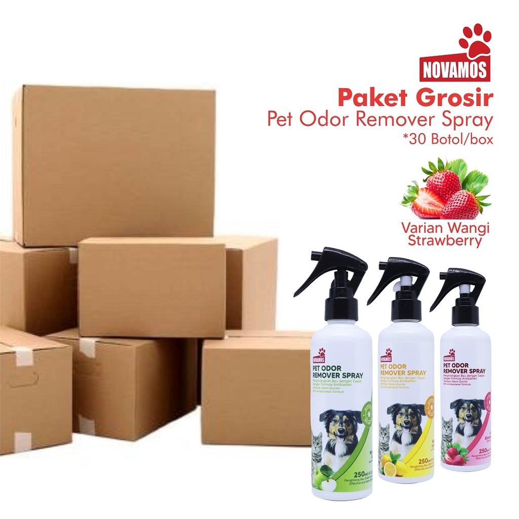 Jual Paket Grosir Novamos Pet Odor Remover Spray Varian Strawberry 30Pcs/Box Jayapura, Sorong